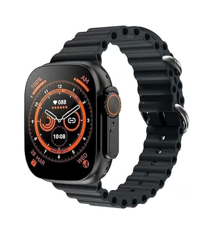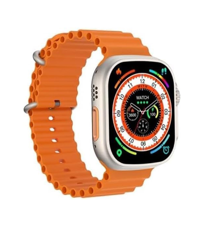 ساعة ذكية سمارت ووتش الترا 2 بشاشة عرض كاملة أنفينيت (1.99)، شحن لاسلكي، متوافقة مع جوالات ايفون واندرويد، سوار سيليكون (برتقالي)